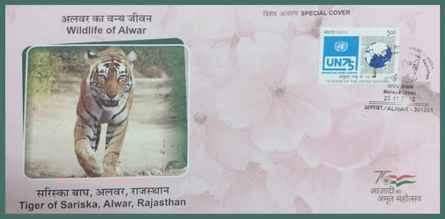 A Special Covers was released on Tiger of Sariska at Alwar on 25th Nov 2022 . It was issued under the theme of Wildlife of Alwar (Rajasthan).