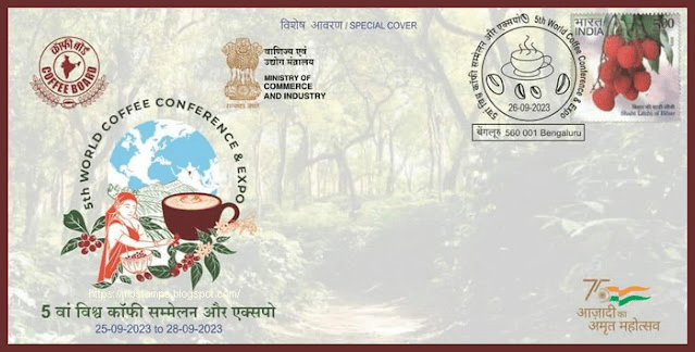 A Special Cover was released at Bengaluru on 26th Sep 2023 to commemorate the 5th World Coffee Conference and Expo. Chikamagalur and Kodagu in India are famous coffee growing areas in India.