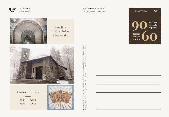 Croatia post issued a Postcard on 22 Feb 2024 on Mother of God Sljemenska Queen of Croats