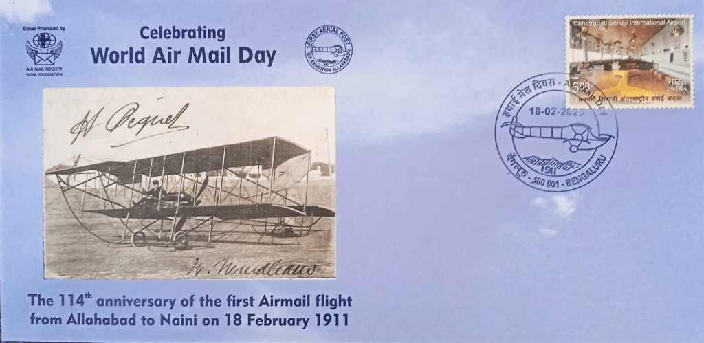 Air Mail Society India Foundation has organised Ist International Virtual Aero and Astro- Philatelic Exhibition AMSIPEX 2025 from 15th to 25th Feb 2025. A limited edition Special Cover was released on 18th Feb 2025 at Bengaluru to mark the World Air Mail Day. It also commemorates the 114th Anniversary of First Airmail Flight from Allhabad to Naini on 18th Feb 1911.