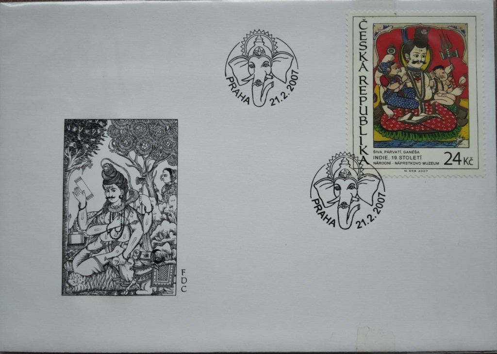 Czech (Ceska) Republic issued a 24 Koruna stamp on 21 Feb 2007 featuring Lord Shiva , Parvati and Ganesha. It is a reproduction of 19th Century Indian Painting in National Museum in Prague called the Naprstek Museum of Asian , African and American Cultures.