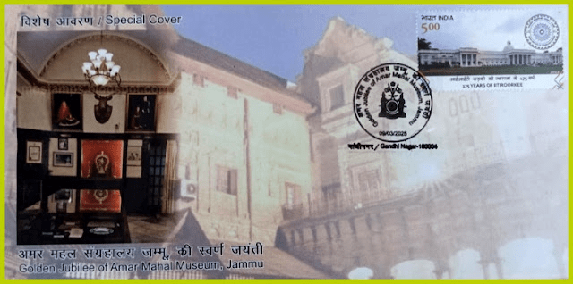 A Special Cover was released on 09 Mar 2025 to commemorate Golden Jubilee of Amar Mahal . Museum Jammu . It was built in 1862 by a French Architect on Chateau Style architecture overlooking the Tawi river.