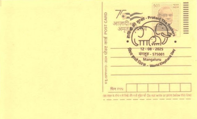 Karnataka Postal Circle released a Special Cancellation at all State Philatelic Bureaus on 12th Aug 2025 to mark World Elephant Day.
