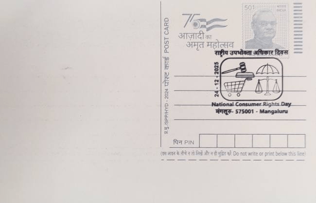 Karnataka Postal Circle released a special cancellation on 24th December 2025 to celebrate National Consumer Rights Day. It was on this day that the Consumer Protection Act, 1986, received the President’s assent, establishing a comprehensive set of rights for consumers.