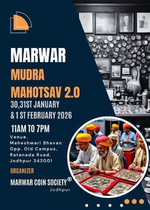 Asian Philately, Coin Shows, Coins, Currency, Exhibitions Marwar Mudra Mahotsav – Jan Feb 2026 Date: 28/01/2026Author: stampdigest 0 Comments Marwar Mudra Mahotsav – Jan Feb 2026 Dates – 30-31 Jan & 01 Feb 2026 Share this: Share on Facebook (Opens in new window) Facebook Share on LinkedIn (Opens in new window) LinkedIn Share on X (Opens in new window) X More Share on Pinterest (Opens in new window) Pinterest Like Loading... Related