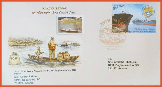 A Special Boat Carried cover was released during District Level Philatelic Exhibition Nilachalpex 2026 held at Guwahati on 08 & 09 Jan 2026. The cover was carried by boat from Nagarbera to Baghmarachar.